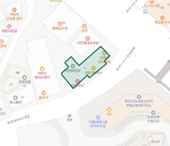 대영온천 옆 건물 4층 · 더비치 푸르지오써밋 아파트 앞 · GS 더프레시 마트 건물